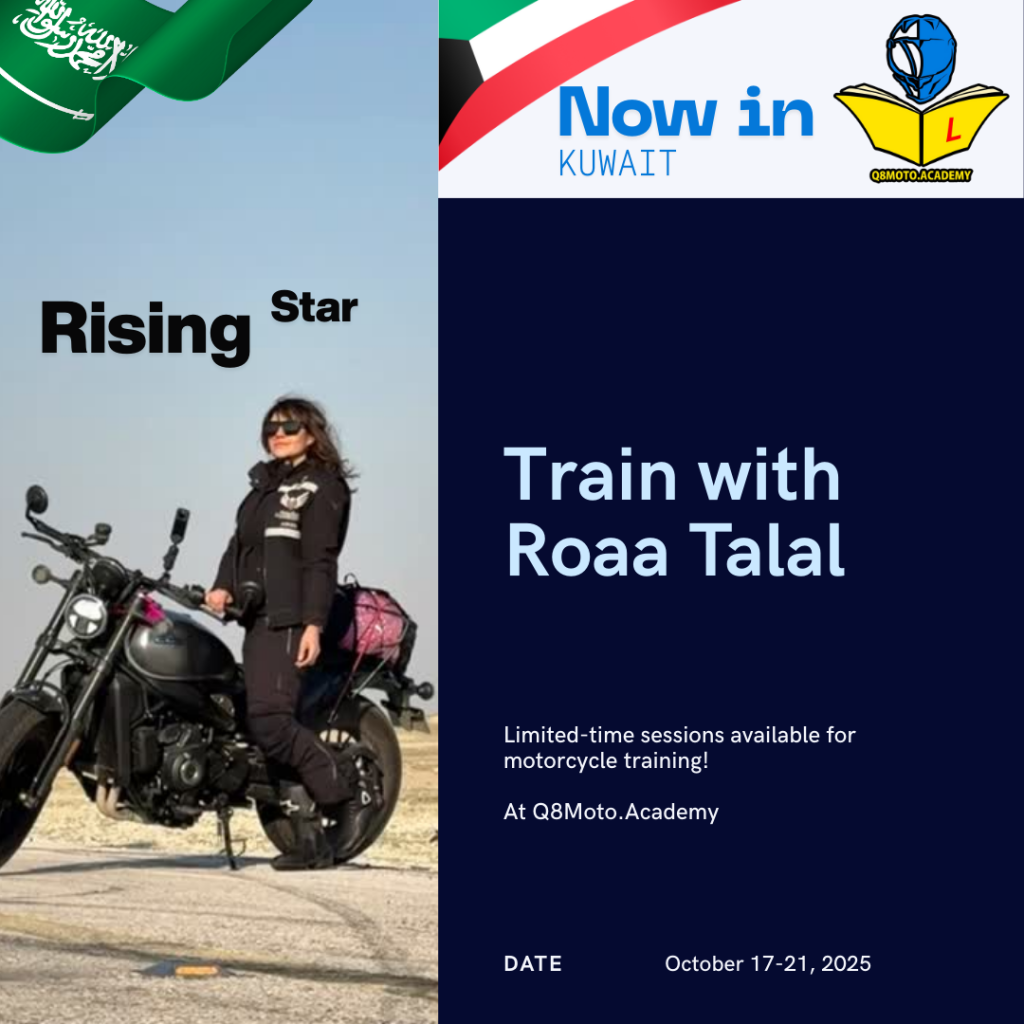 Train with Roaa Talal, a certified motorcycle instructor from Saudi Arabia. This exclusive 10-hour course is designed for female riders seeking hands-on instruction, confidence-building, and technical mastery — all under the guidance of one of the region’s rising talents.
